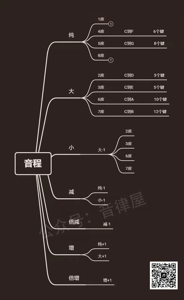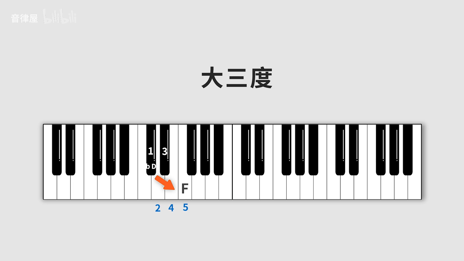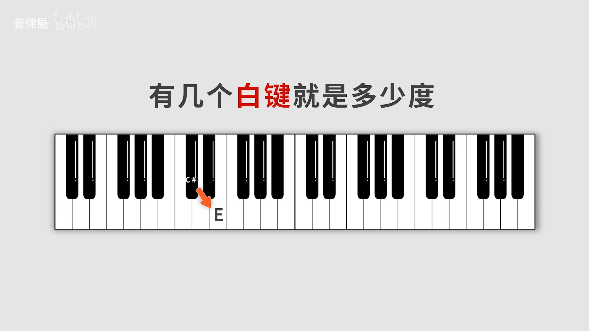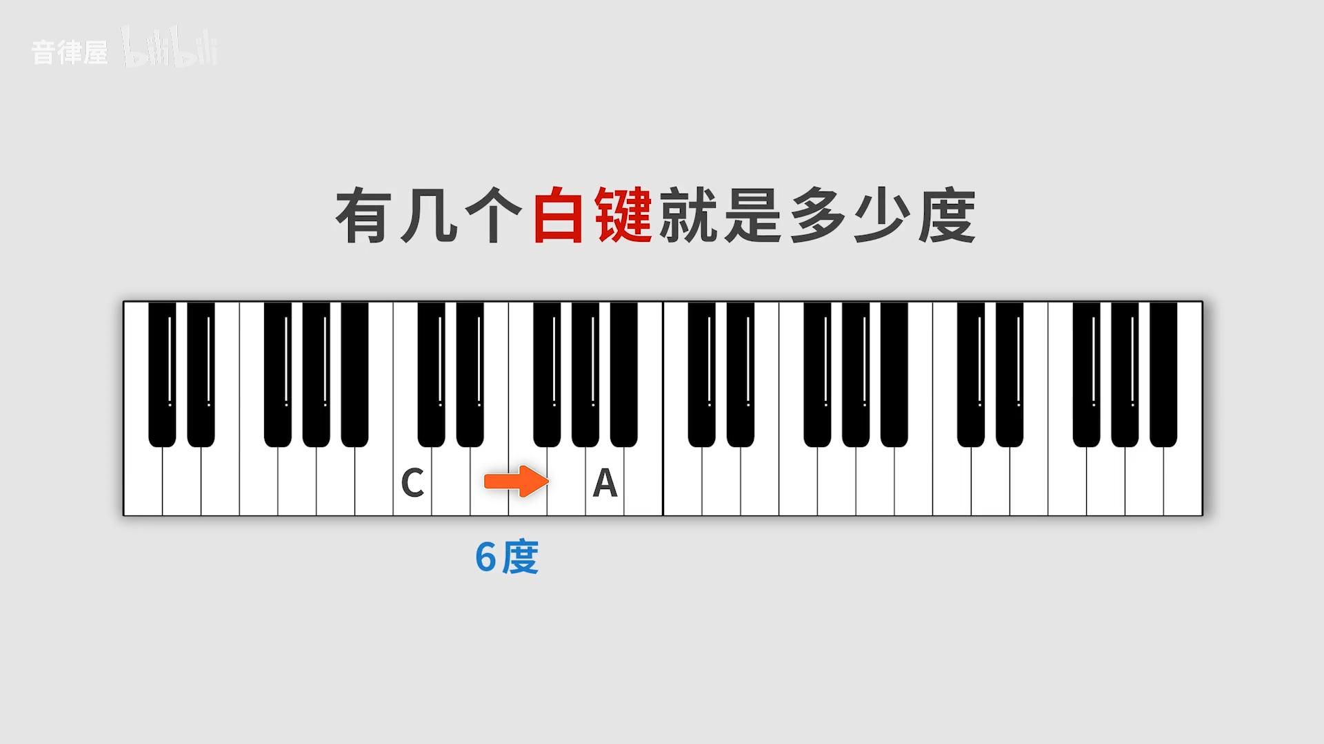 eg:比如 A-C,数一下有四个键,但是大三度C-E有5个键,少一个,所以称为小三度