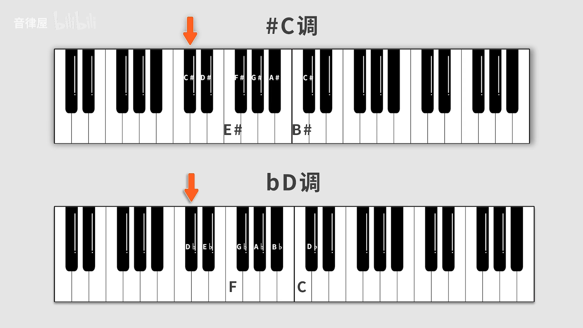黑键没有音名,实际情况通常用降的音名(其实用升的也行,但是会更麻烦,如下图)