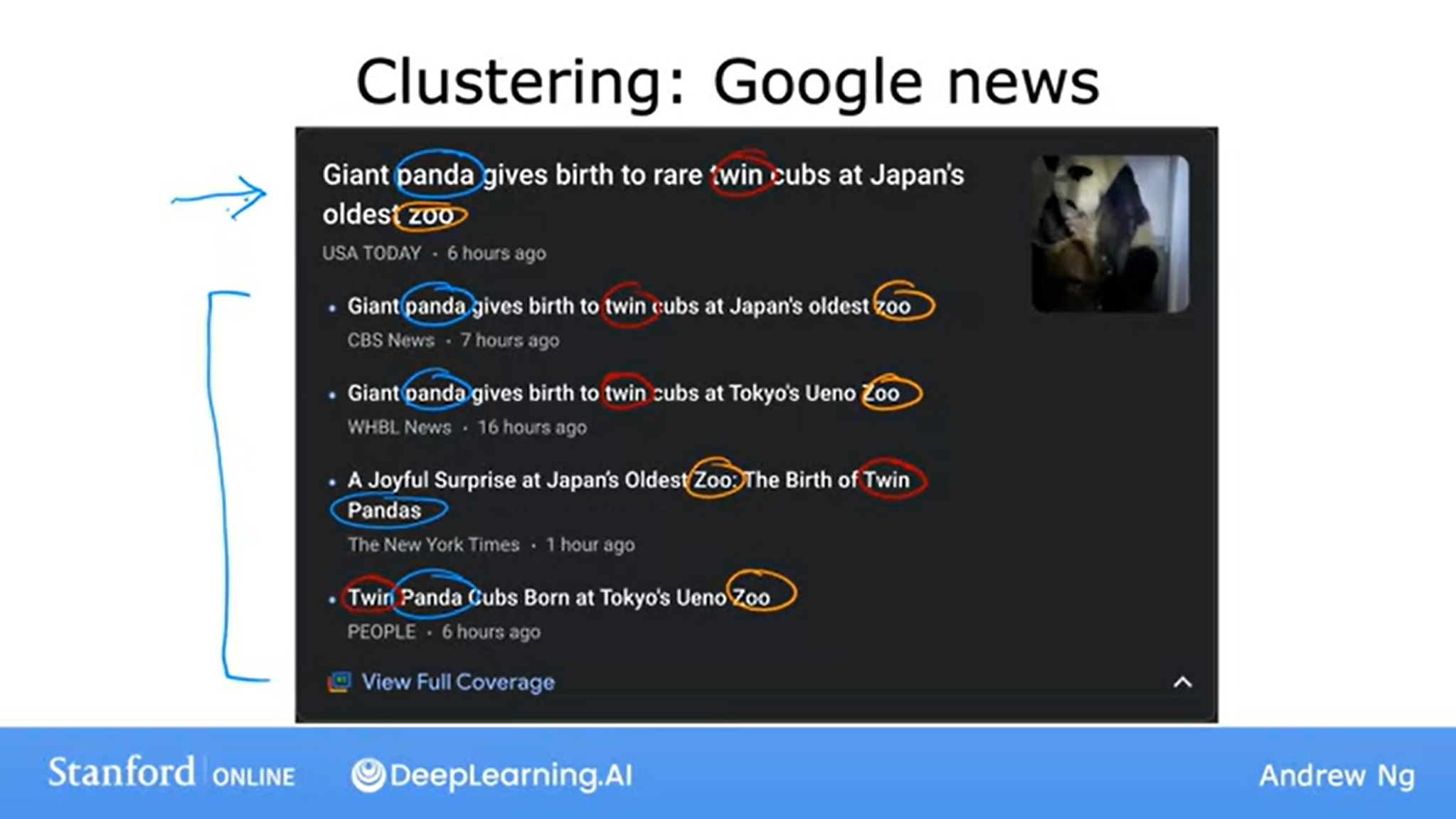 由于并没有人“告诉”谷歌今天新闻的关键词是什么,而是靠clustering算法自己找出关键词并分好组,我们才能说这是“无监督”的