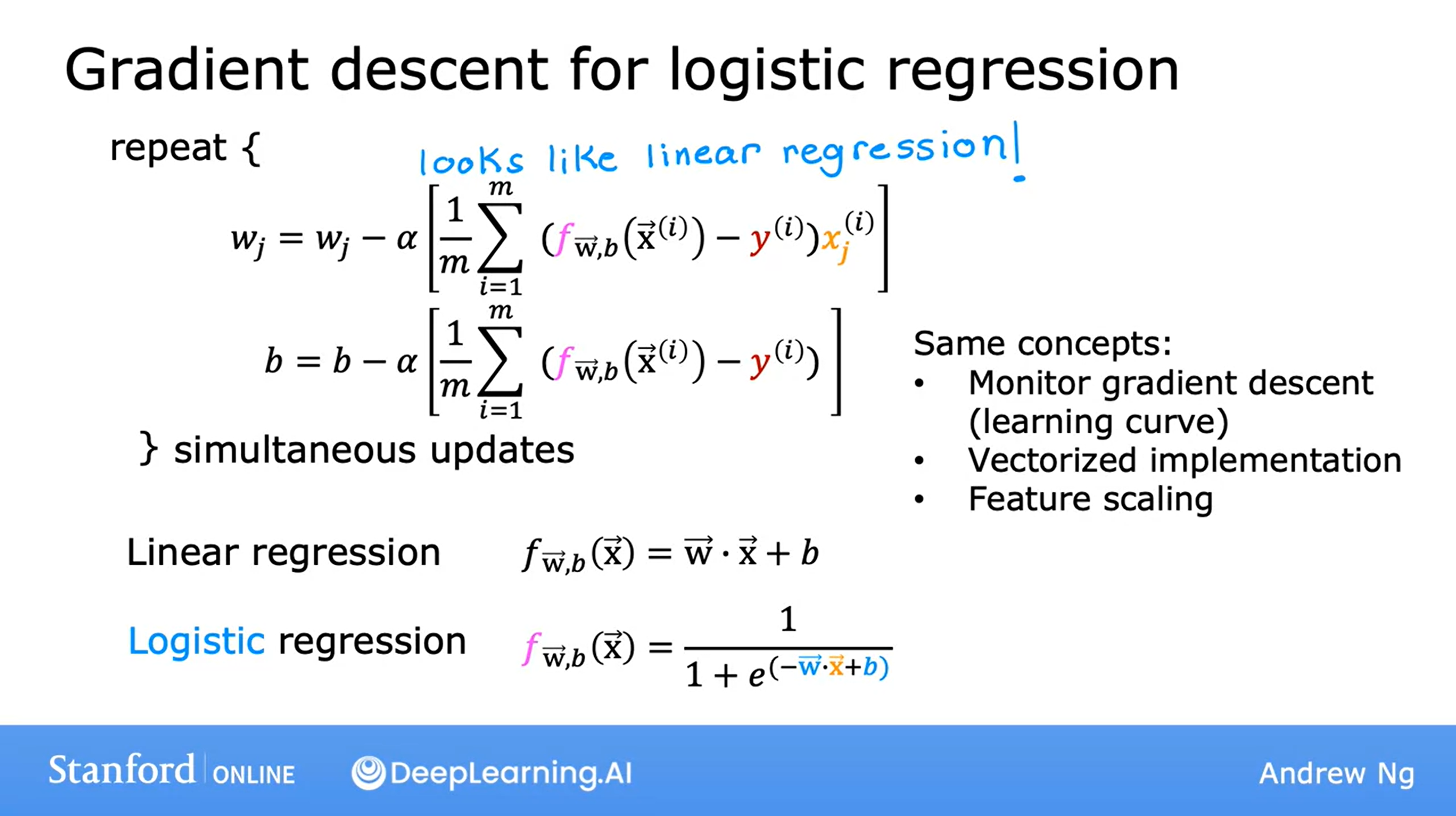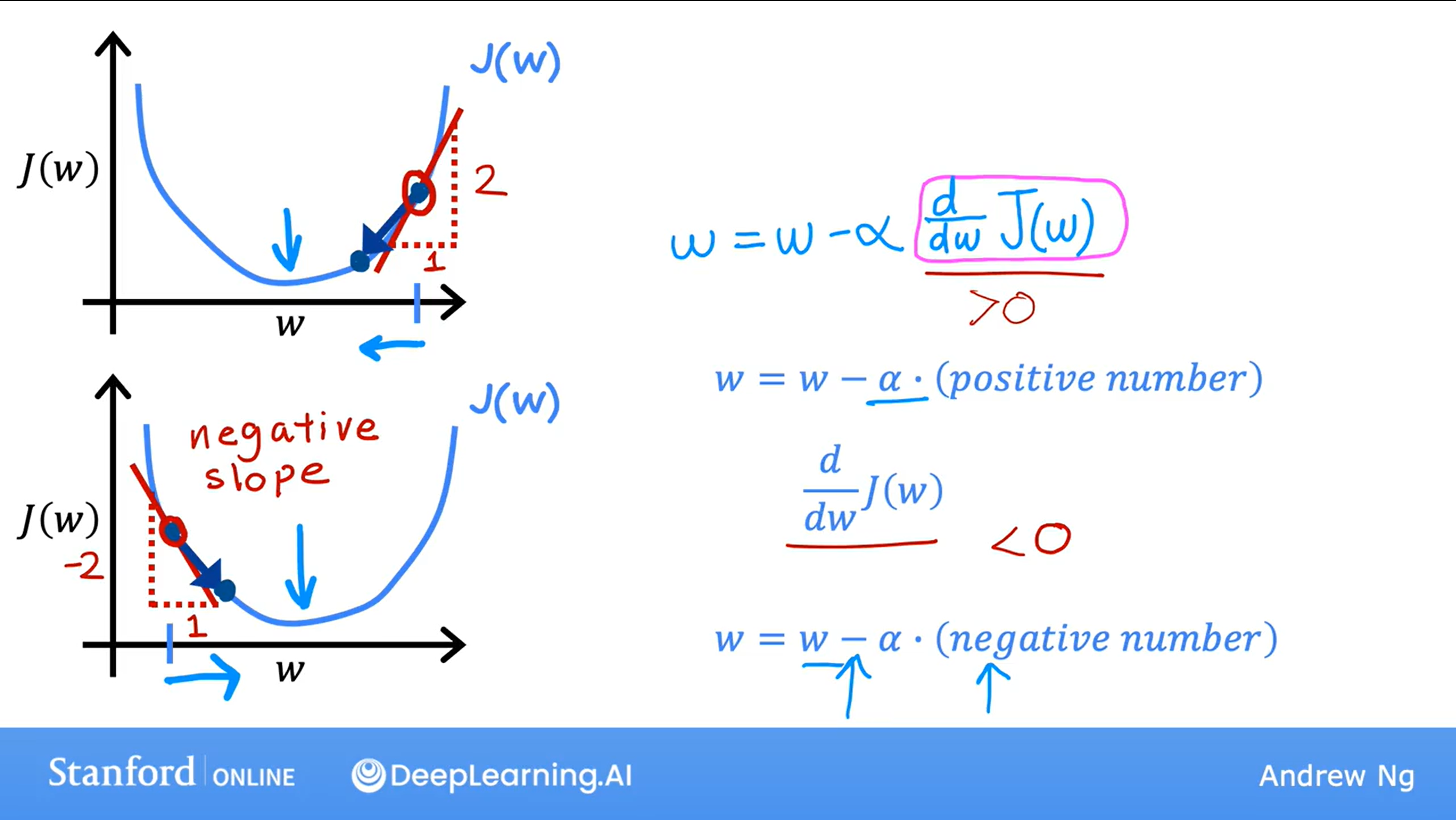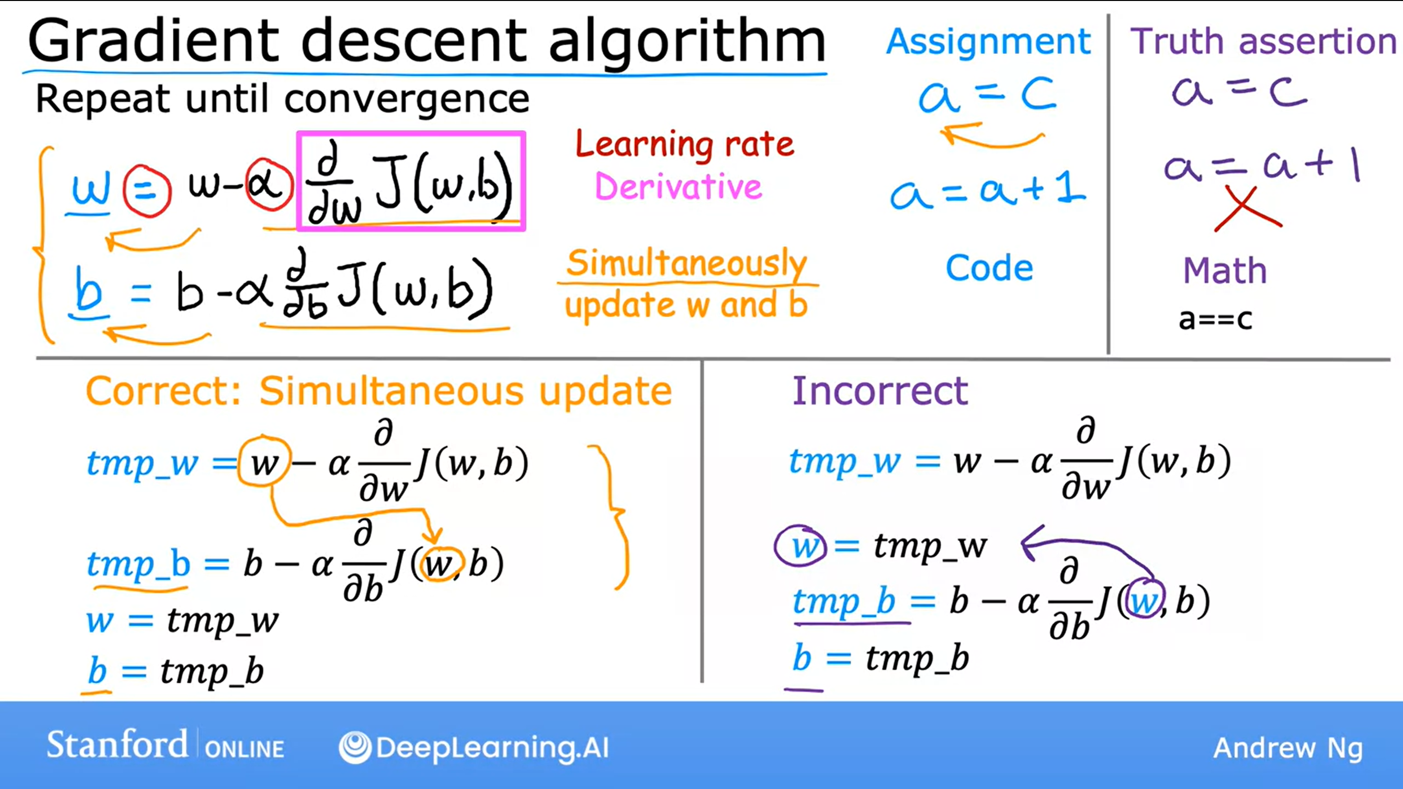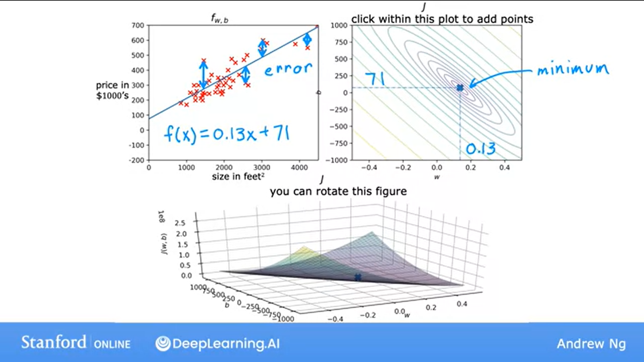α: The learning rate controls how big of a step you take when updating the model’s parameters, w and b