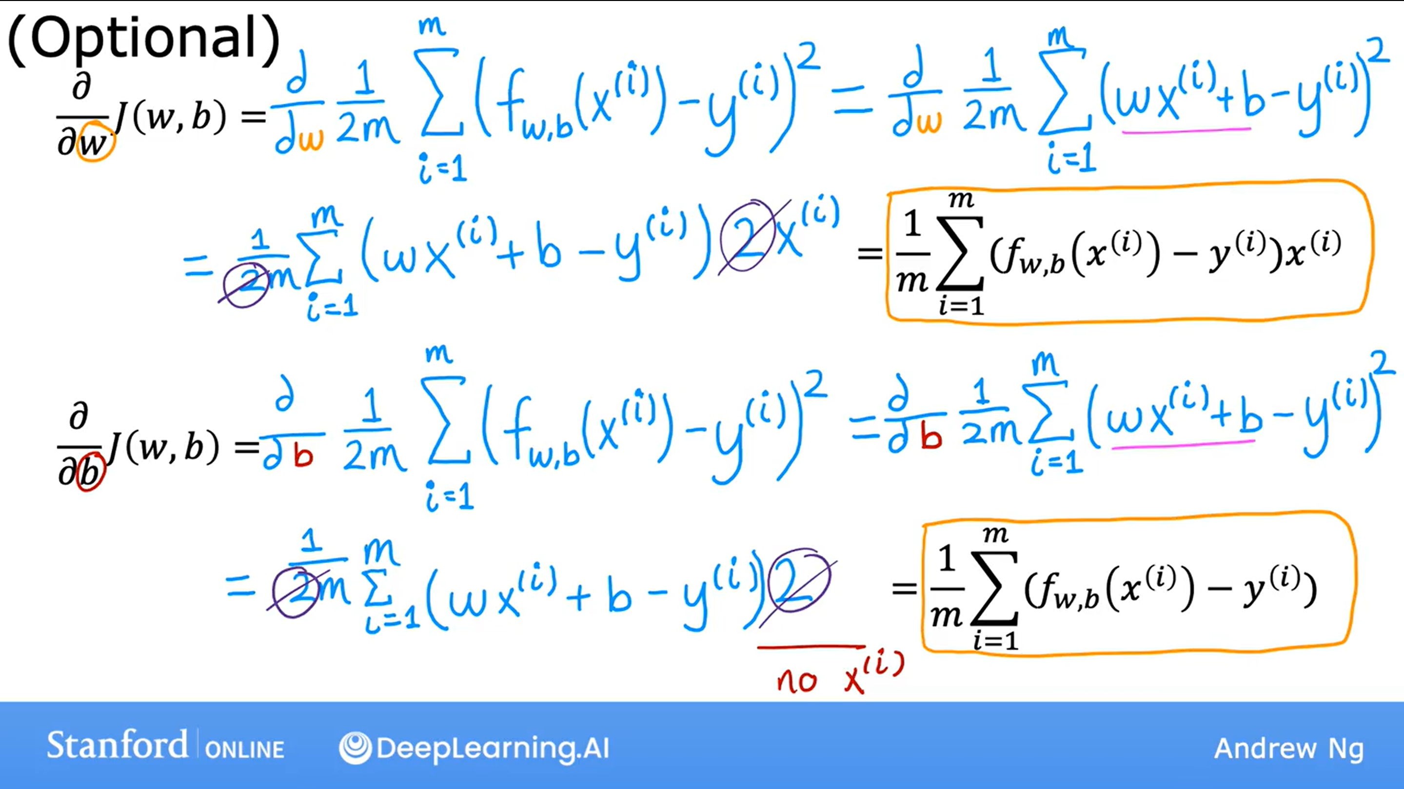 别放个假忘记怎么求偏导了哈哈哈哈,怕你忘了咱们来看下过程。之前的Cost Fuction为什么用1/2m的理由就在这,在求完偏导之后整个式子看起来更整洁。(这个求的就是梯度)
