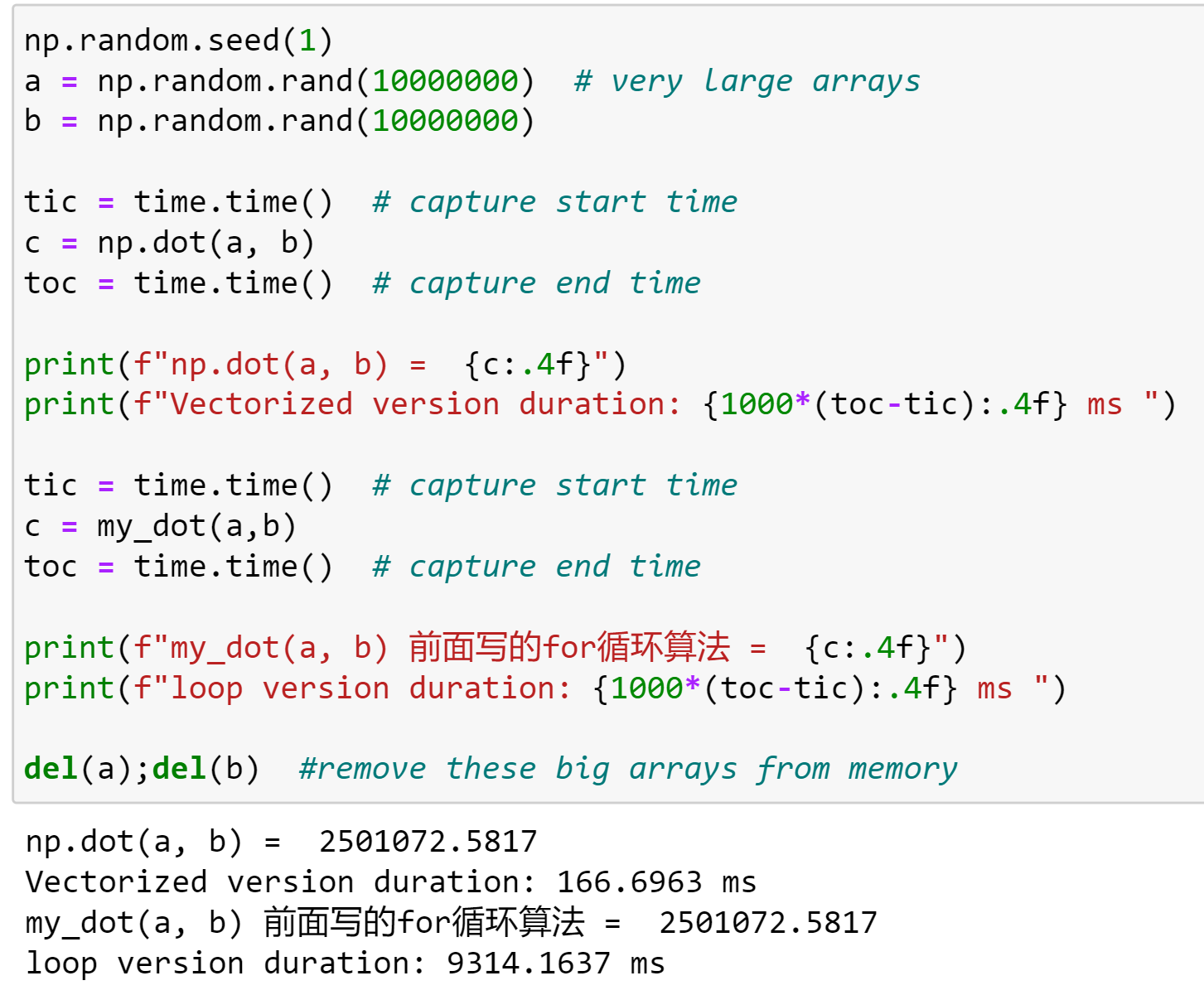 将数据向量化之后可以直接用NumPy里的dot()函数来点乘两个向量。