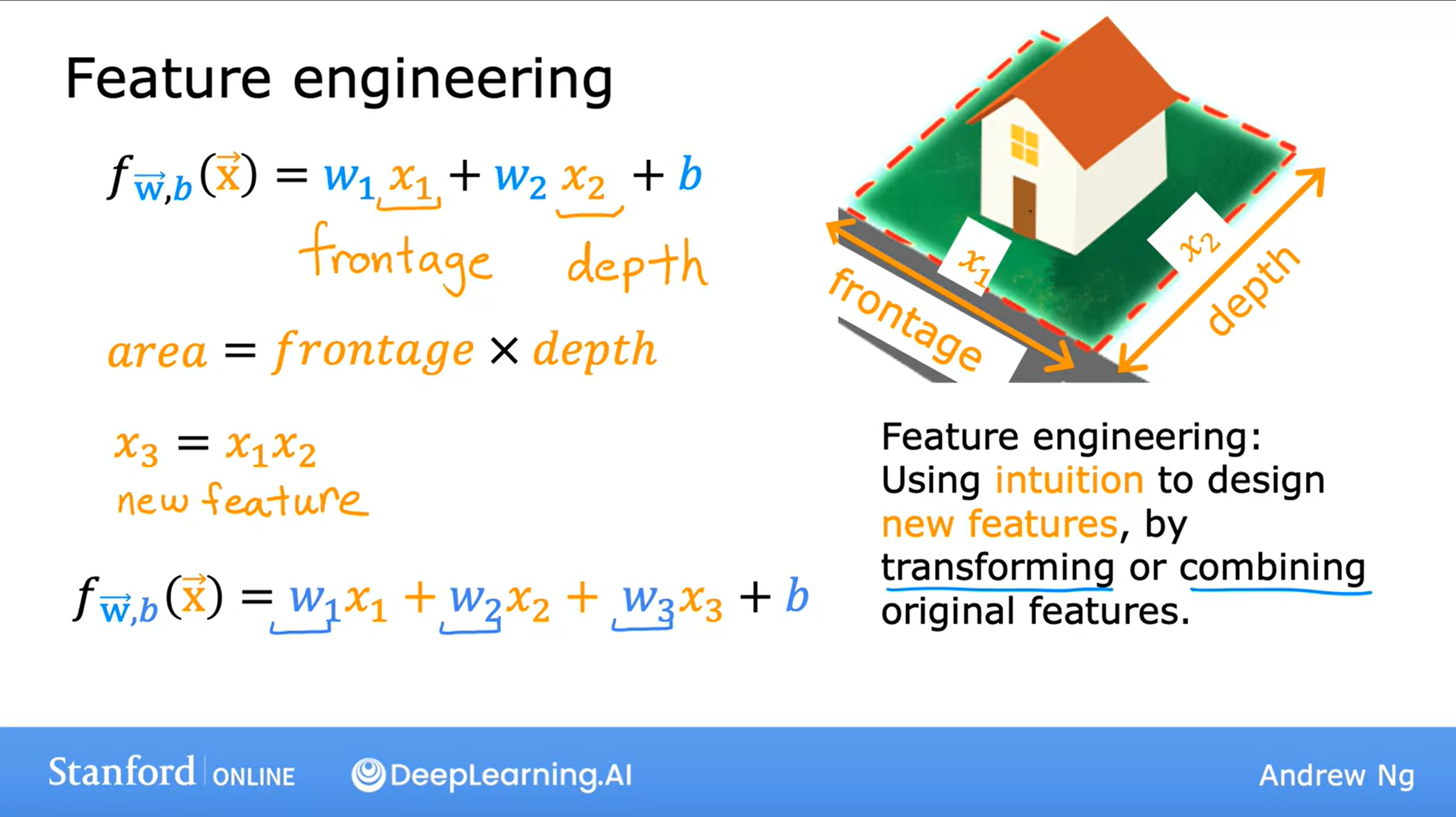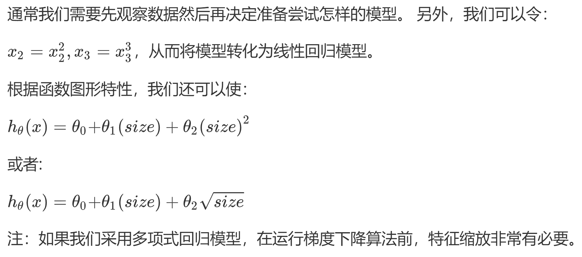 像图片中,通过frontage和width的乘积创建了新的feature,同样可以引入到函数中,以提升预测的精度。